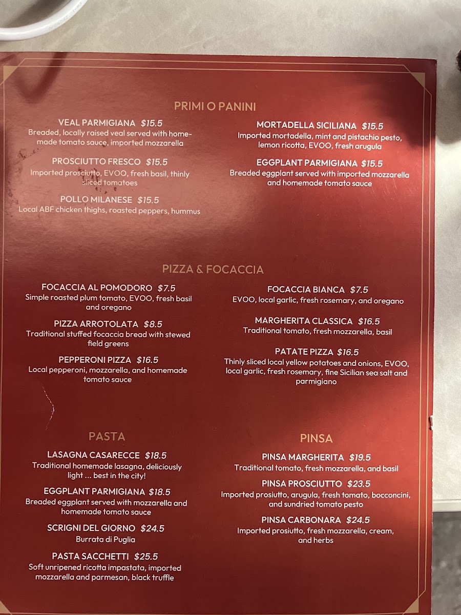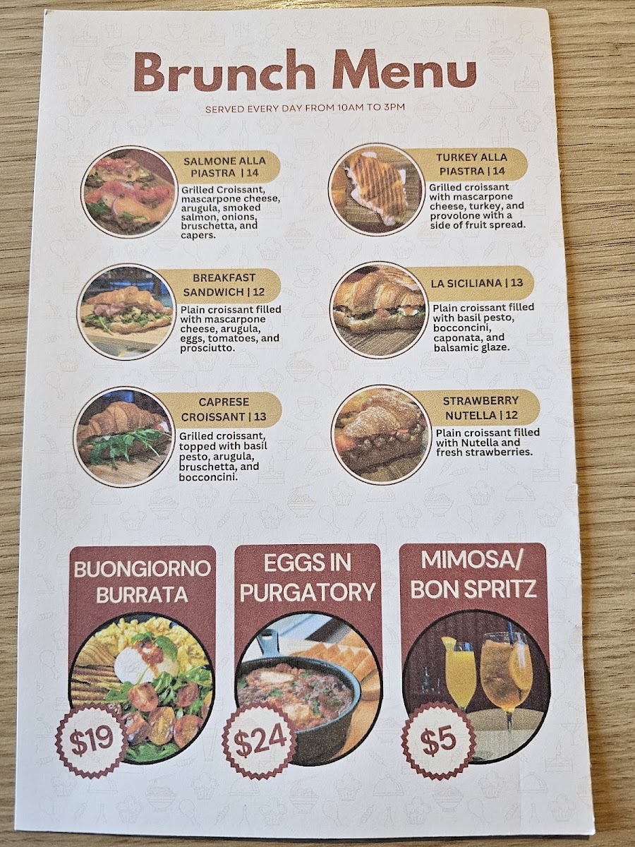 The restaurant perfectly blends Italian flair with a laid-back atmosphere. Since it was my first visit, I ordered a cortado. Their coffee beans lean toward the mainstream side and are not deeply roasted. I arrived just around noon, so I decided to try their brunch menu. Their Turkey alla Piastra served with orange peel marmalade was truly impressive — fresh and sweet with just the right balance! The mortadella was rich with pistachio flavor. Overall, I really enjoyed the experience. The only downside is that parking on the same side of the street is hard to find. The only option is to park at the surface lot of Bayview Village across the street and then walk over.