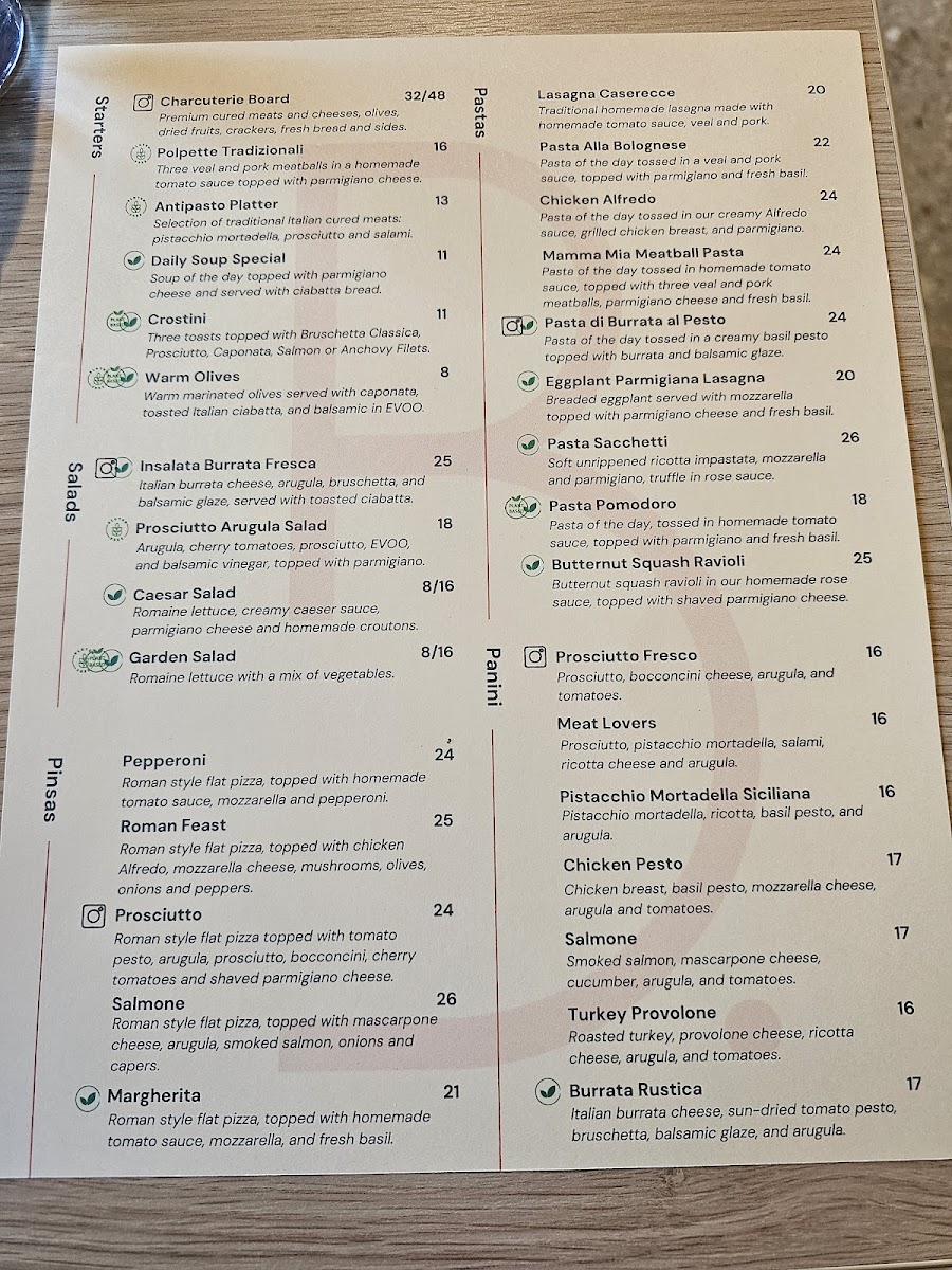 Honestly, this restaurant genuinely deserves these 5 stars all around. While i’ve only eaten here once, it for sure had so much going on that as know another visit or two would solidify these ratings. Starting with the service - we walked in and got sat right away, our server Marina was so sweet, helpful and kind. She knew her stuff about the best recommendations. She was consistent and was able to take care of us very well, thank you Marina! The food was amazing. We shared the grilled chicken panini which came on fresh grilled bread, with pesto and arugula. We also had some pasta dishes - the creamy pesto and burrata as well as the butternut squash ravioli. Both were so creamy and tasty. the ravioli was fresh and packed with flavour and the rose on top just added to it. The pesto was on par with flavour and the burrata added another level to it. We also had the crema. It was creamy and delicious, not too strong and the perfect consistency!! We shared the brigadeiros as a dessert as well - fresh and tasty! Cannot wait to come back here in the summer to sit out in the patio at the cute North York Italian Eatery and Cafe!